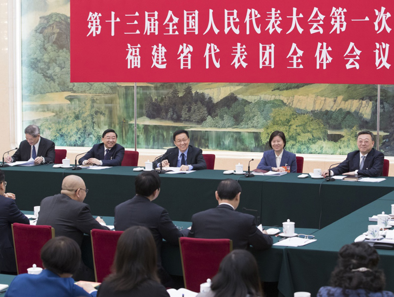 3月8日,中共中央政治局常委韩正参加十三届全国人大一次会议福建代表团的审议。