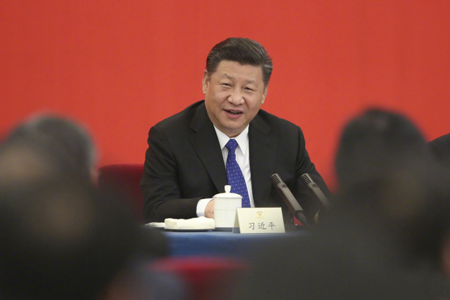 3月4日下午,中共中央总书记、国家主席、中央军委主席习近平看望参加全国政协十三届一次会议的民盟、致公党、无党派人士、侨联界委员并参加联组会,听取意见和建议。