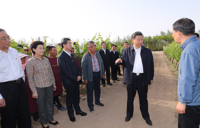 6月8日至10日,中共中央总书记、国家主席、中央军委主席习近平在宁夏考察。这是6月9日下午,习近平在银川市西夏区葡萄种植基地,同工人和技术人员交流。