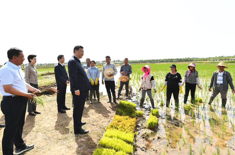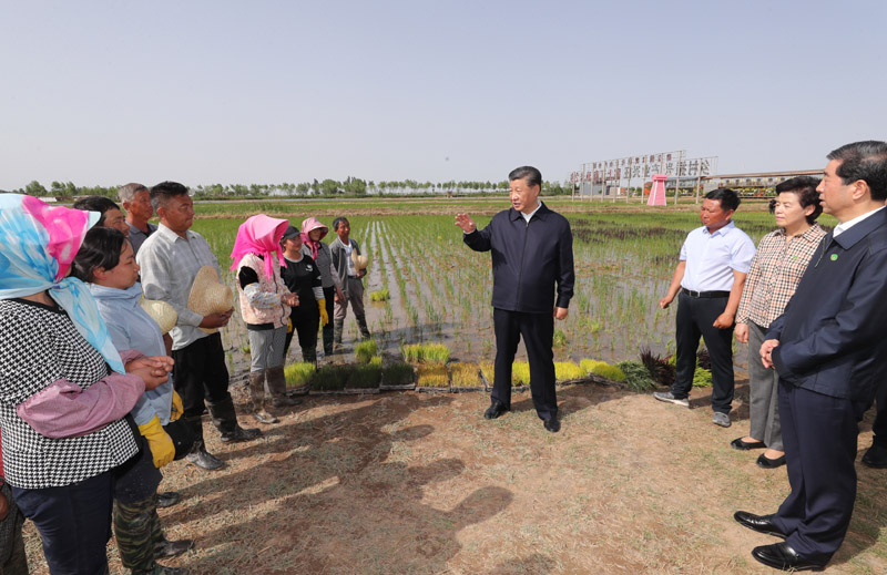 6月8日至10日,中共中央总书记、国家主席、中央军委主席习近平在宁夏考察。这是6月9日下午,习近平在银川市贺兰县稻渔空间乡村生态观光园,同正在劳作的村民亲切交谈。