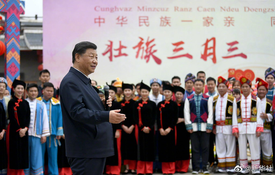习近平在南宁考察调研 来源:共产党员网 发布时间:2021-04-27 16:32:00 浏览次数: 次 【字体:小 大】 4月27日上午,正在广西南宁考察调研的习近平总书记,来到广西民族博物馆,参观壮族文化展,观看三月三“歌圩节”壮族对歌等民族文化活动展示,了解促进民族团结进步和民族文化保护传承等情况。 分享到: 【打印正文】