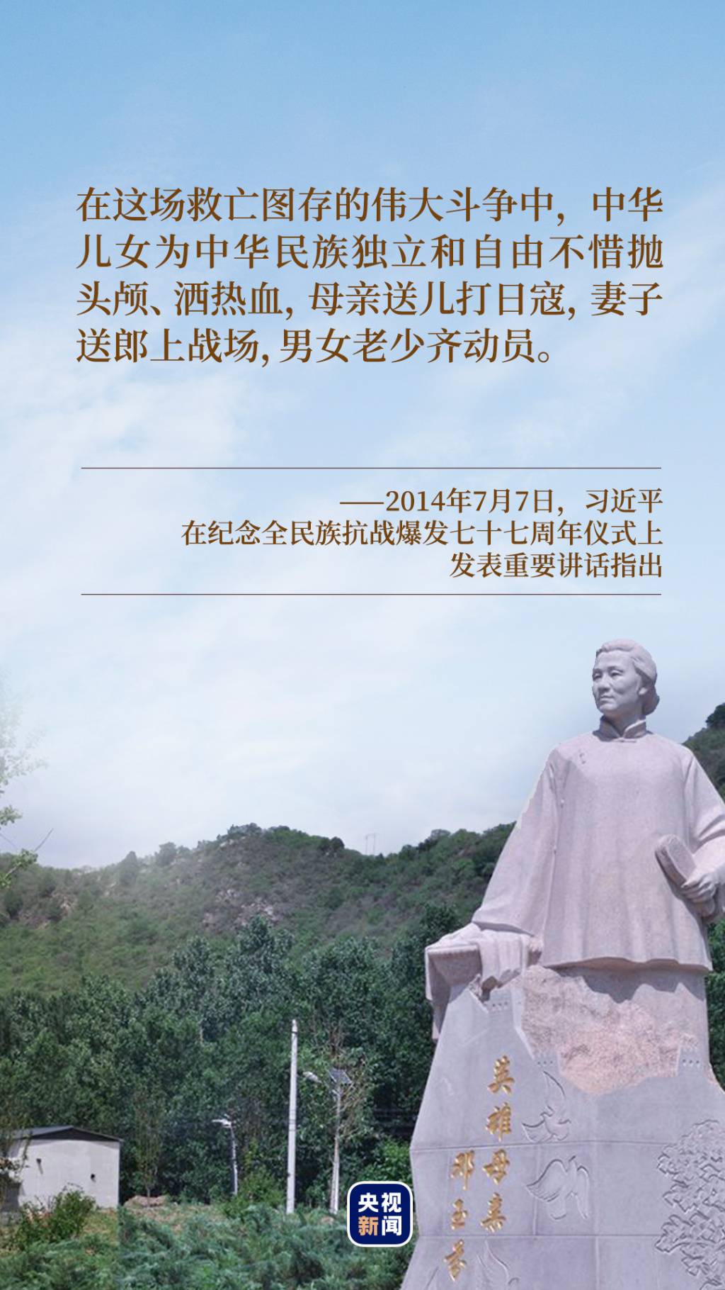 “北京密云县一位名叫邓玉芬的母亲,把丈夫和5个孩子送上前线,他们全部战死沙场。”2014年7月7日,在出席纪念全民族抗战爆发七十七周年仪式并发表重要讲话时,习近平总书记讲述了英雄母亲邓玉芬的故事。